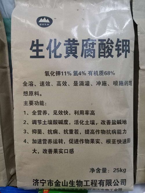外觀為棕黃色粉末,略有焦糖味,易溶于水,細(xì)度<120目,水可溶物>99.7%,不絮沉,黃腐酸>50%,氧化鉀11.7%、氮3%、磷O.4%,粗蛋白含量19.78%,氦基酸8%,含有大量的B族維生素、維生素C、肌醇、多糖等,PH在5-6之間,其活性是天然腐殖酸的1O倍,還含有多種維生素、微量元素、菌體蛋白、核酸、表面活性物質(zhì)及促生長(zhǎng)因子等。本品抗酸堿、抗氧化、對(duì)二價(jià)陽(yáng)離子有很強(qiáng)的螯合能力,因此可與Fe、Cu、Zn、Mn、Ca等金屬離子形成有機(jī)螯合微量元素,可促進(jìn)植物對(duì)礦物質(zhì)的吸收和利用。