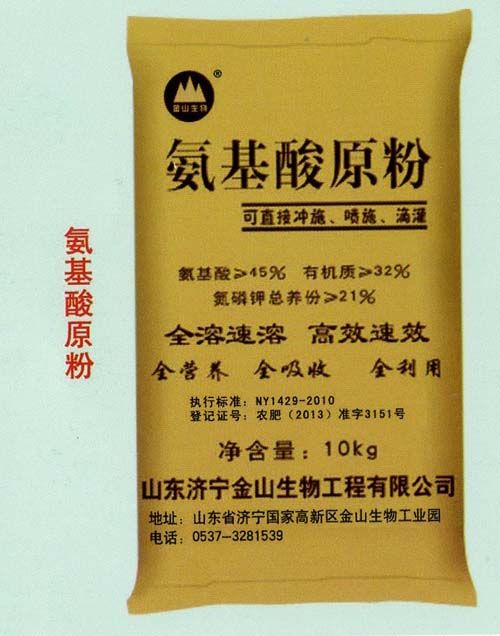 產(chǎn)品特點(diǎn):本品為高蛋白氨基酸特補(bǔ)營(yíng)養(yǎng)粉,富含18種游離L-氨基酸,其中作物必須的氨基酸9種,各種氨基酸總含量45%以上。同時(shí)含有有機(jī)無(wú)機(jī)氮18.6%-22%,磷0.5%左右,鉀2.2%-4.4%,直接為植物吸收利用,有“植物奶”之美稱。全溶、速溶、吸收,利用。規(guī)格:10kg